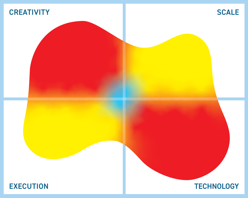 The image in this Mutable Quadrant is derived from 13 high level metrics, the more the image covers a section the better. Execution metrics relate to the company, Technology to the product, Creativity to both technical and business innovation and Scale covers the potential business and market impact.
