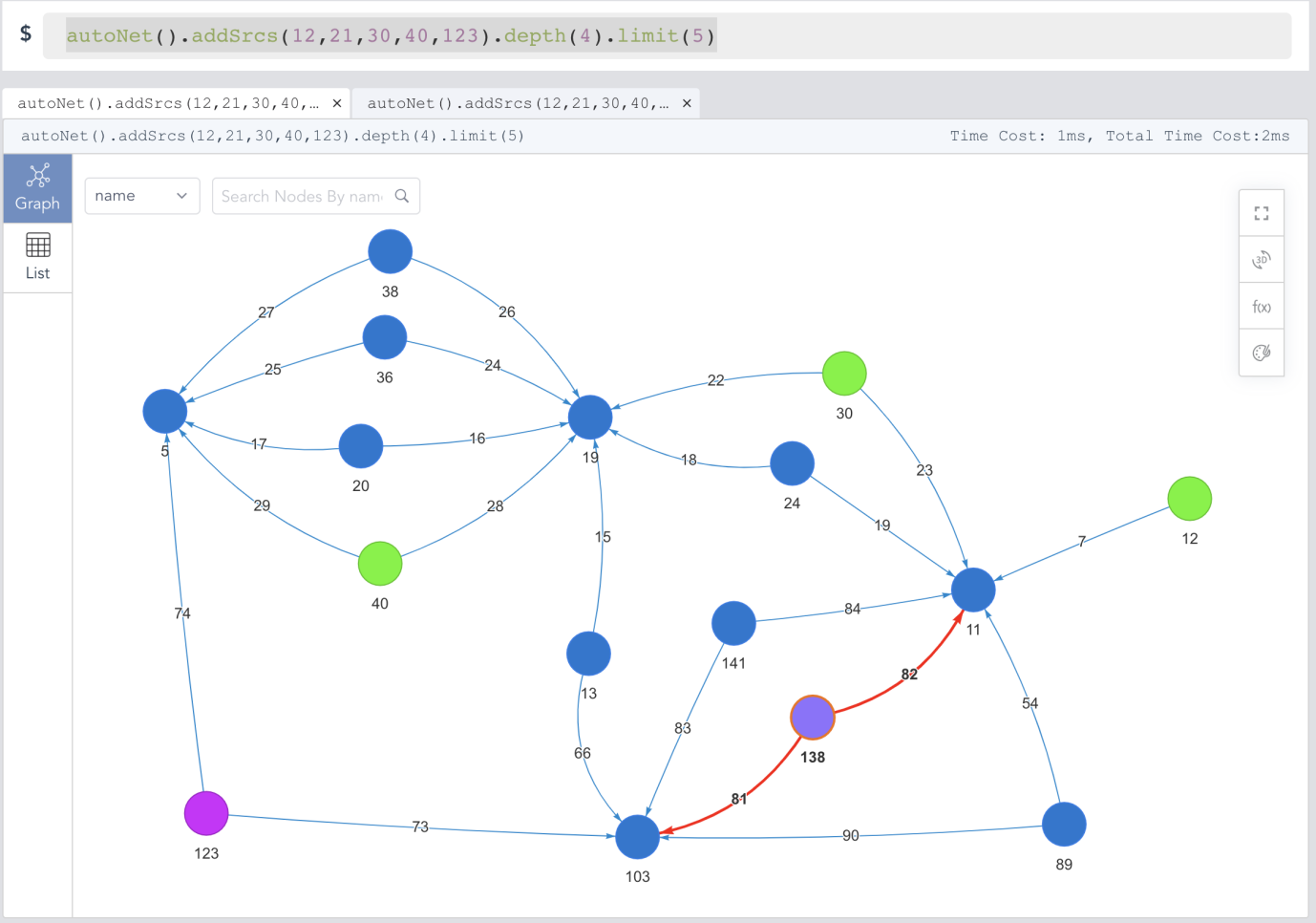 autoNet().addSrcs(12,21,30,40,123).depth(4).limit(5)