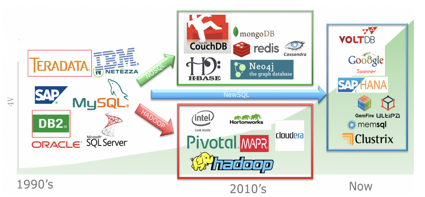 The evolvement of SQL gives rise to relational databases, and the rise of the Internet gives birth to NoSQL, mainly due to relational DBs' incapacity to cope with the need for speed and data-modeling flexibility.