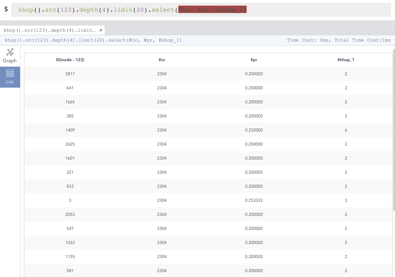 nodeSpread().src(123).depth(6).spread_type("BFS").limit(4000);
