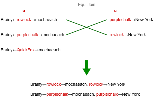 declare no common variables, resulting in a Cartesian product. Each row from the first result set is combined with every row from the second.