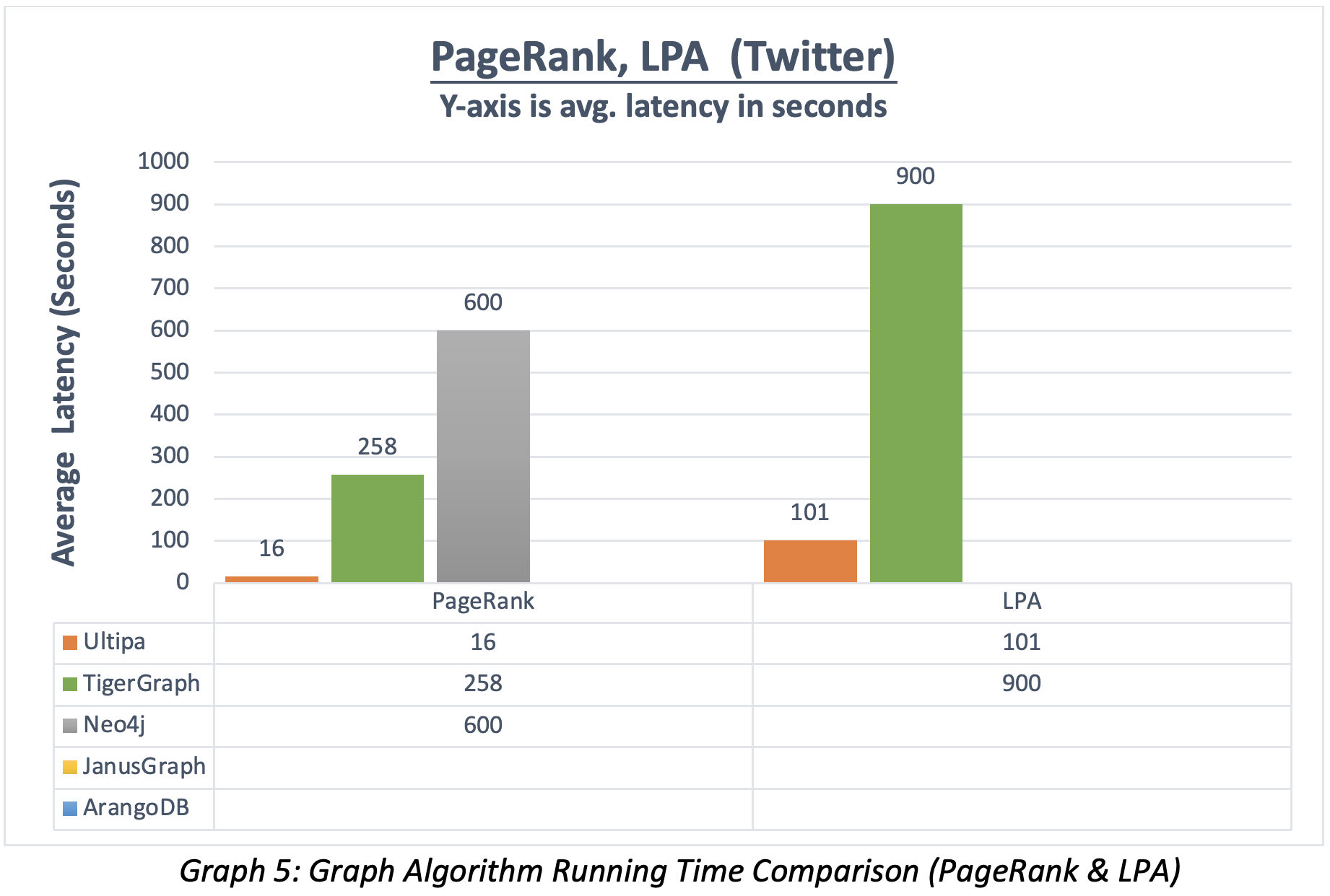 Graph Algorithm reflects a graph DMBS’ computing power in terms of mass data processing. The number of supported graph algorithms and running speed directly tell a system’s capability and feature completeness. Many graph DBMSes are based on some graph computing engine or framework, which can only handle static dataset, once the dataset is modified, a new projection (loading data into DRAM, comparable to ETL) has to be constructed before the graph algorithms can be relaunched. This is the case for Apache Spark GraphX and Neo4j GDS, the ETL process may take a rather long time, which should be included in the algorithm running time.