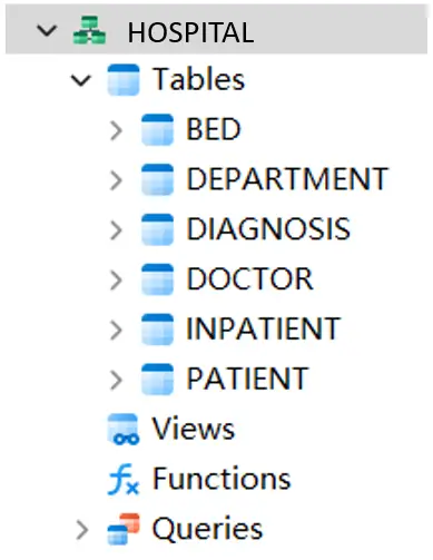 In simplifying matters, consider this Hospital Information Management System holding fundamental details about doctors, patients, departments, and hospital beds, alongside records of doctors' consultations and patients' hospitalizations. All these data are stored across six distinct tables: