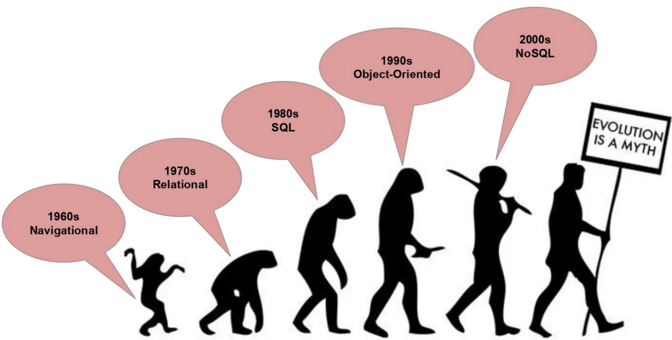 The evolvement of SQL gives rise to relational databases, and the rise of the Internet gives birth to NoSQL, mainly due to relational DBs' incapacity to cope with the need for speed and data-modeling flexibility.