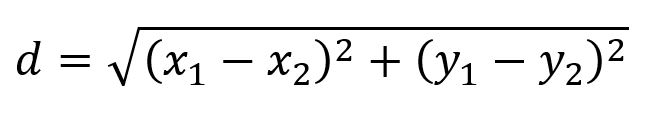 In 2-dimensional space, the formula to compute the Euclidean distance between points A(x1, y1) and B(x2, y2) is: