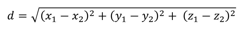 In 3-dimensional space, the formula to compute the Euclidean distance between points A(x1, y1, z1) and B(x2, y2, z2) is: