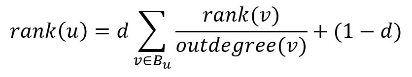 To overcome these problems, a damping factor, whose value is between 0 and 1, is introduced. It gives each webpage a base rank while weakening the ranks passed from backlinks. The rank of page u after one iteration becomes: