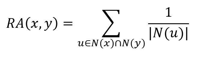 where N(u) is the set of nodes adjacent to u. For each common neighbor u of the two nodes, the Resource Allocation first calculates the reciprocal of its degree |N(u)|, and then sums these values across all common neighbors.