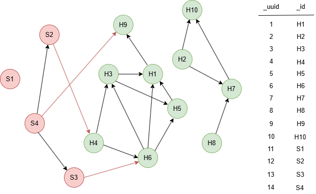 In the threat model of SybilRank, all nodes are divided into two disjoint sets: non-Sybils H, and Sybils S. Denote the non-Sybil region GH as the subgraph induced by the set H, which includes all non-Sybils and edges among them. Similarly, the Sybil region GS is the subgraph induced by S. GH and GS are connected by attacks edges between Sybils and non-Sybils.