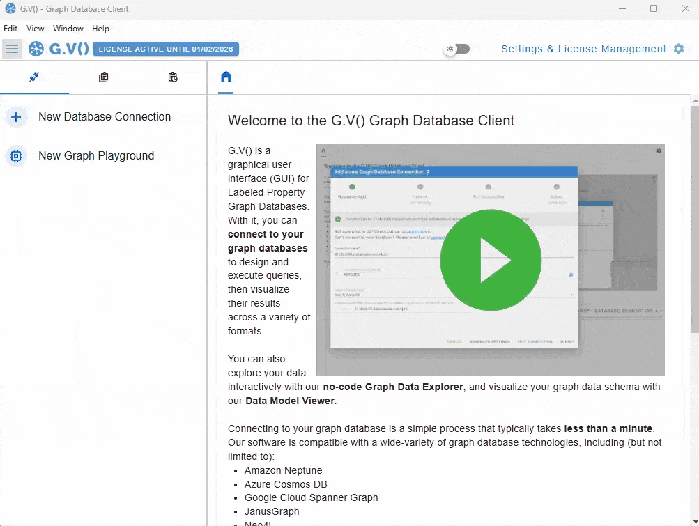 G.V() is an all-in-one graph database client to write, debug, test and analyze results for your property-graph database. It offers a rich UI with smart autocomplete, graph visualization, editing and connection management. It's compatible with Ultipa and many more.