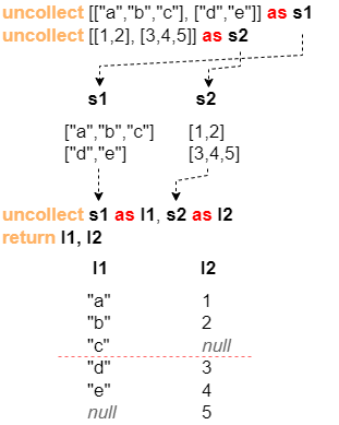 Syntax: UNCOLLECT <expression1> as <alias1>, <expression2> as <alias2>, ...