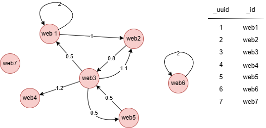| edge_weight_property | @<schema>?.<property> | Numeric type, must LTE | / | Yes | Edge property(-ies) to use as edge weight(s), where the values of multiple properties are summed up |