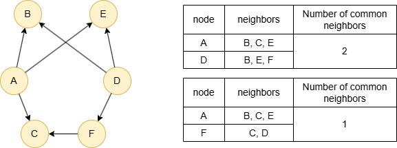 For example, the Common Neighbors algorithm counts the common neighbors between two nodes as the predication score. The intuition is that nodes with many shared neighbors are likely to form a connection in the future.