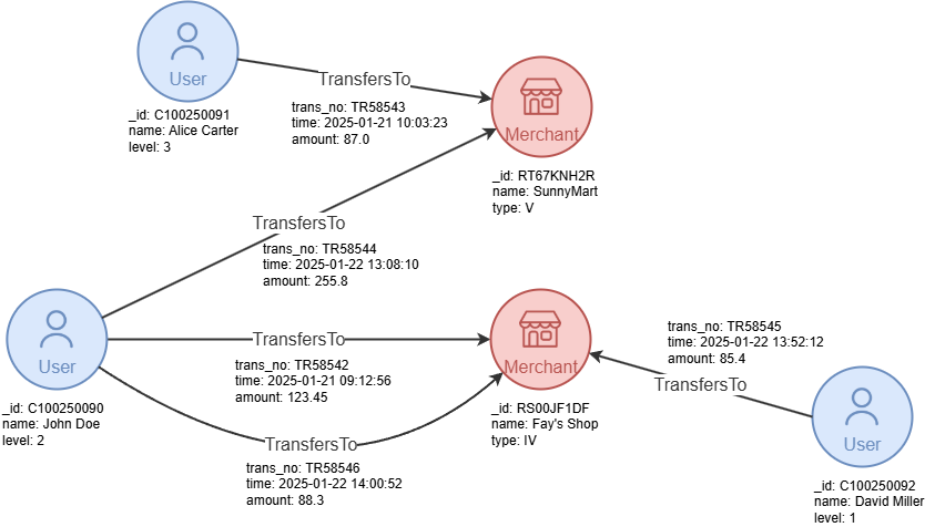 In cases where there is a need to analyze the types of merchants, you can enhance the graph structure by extracting the type