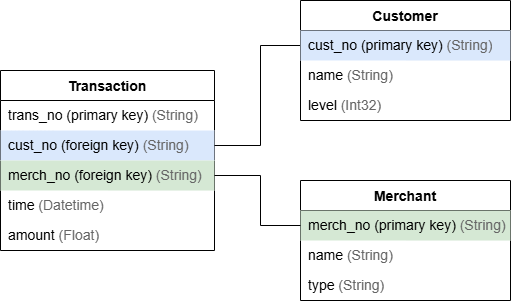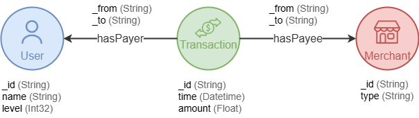 For example, some scenarios focus on transactions as primary entities that require modeling them as nodes instead of edges. The graph structure can be adjusted as below where the Trasaction