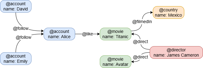 create().node_schema("account").node_schema("movie").node_schema("country").node_schema("director").edge_schema("follow").edge_schema("like").edge_schema("filmedIn").edge_schema("direct");