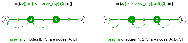 applies exclusively within a node or edge template, referring to the previous node of the current node or edge in a path.