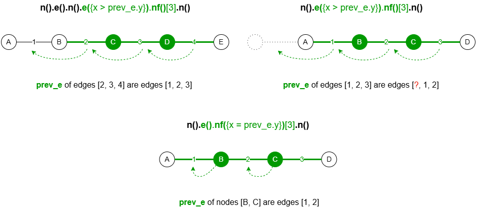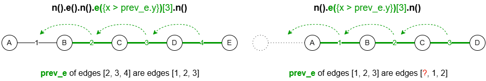 applies exclusively within a node or edge template, referring to the previous edge of the current node or edge in a path.