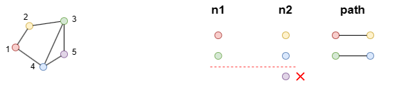 are heterologous, each with a different number of rows; when they enter into the pathfinding clause together, the third row of n2