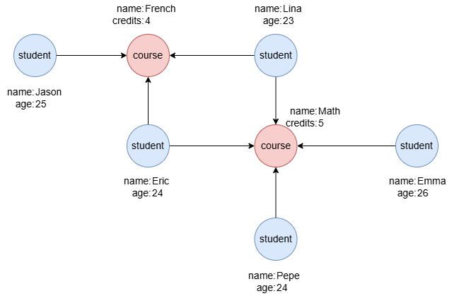 insert().into(@student).nodes([{_id:"S1", name:"Jason", age:25}, {_id:"S2", name:"Lina", age:23}, {_id:"S3", name:"Eric", age:24}, {_id:"S4", name:"Emma", age:26}, {_id:"S5", name:"Pepe", age:24}])