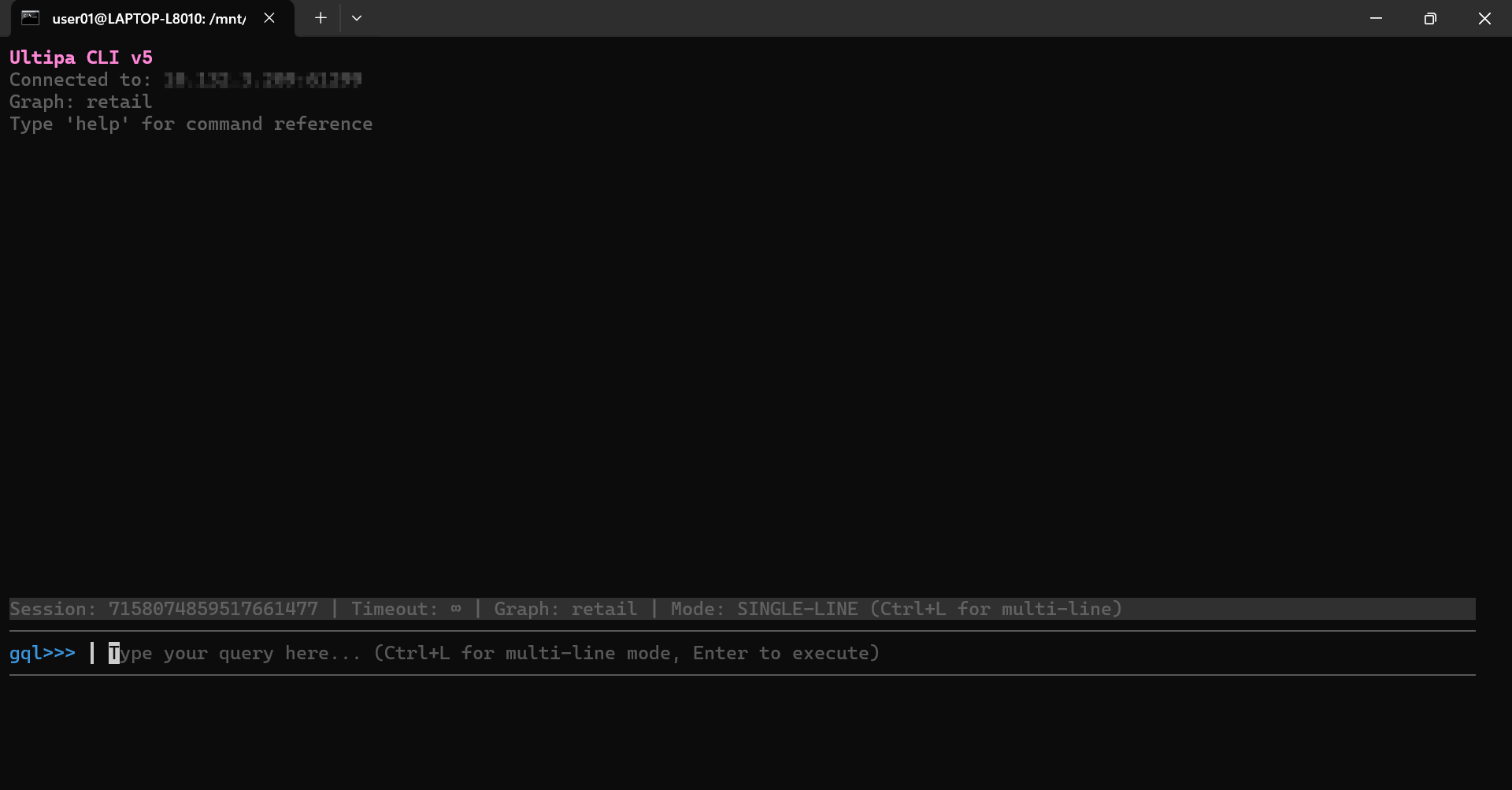 After connecting to Ultipa, you can interact with the database using0 GQL/UQL queries or CLI commands. The session operates in either GQL or UQL mode, supporting queries in the corresponding syntax. Note that most CLI commands can be executed in both modes unless otherwise specified.