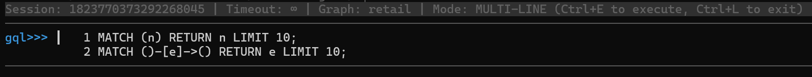To switch back to GQL mode at any time, simply run the gql command: