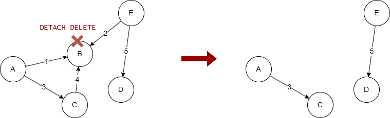 vous permet de supprimer des nodes et des edges. Ces nodes ou edges doivent d'abord être récupérés à l'aide de l'instruction MATCH