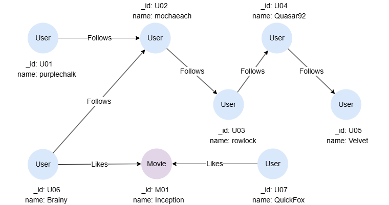 (:User {_id: "U01", name: "rowlock", age: 24})-[:Follows {score: 2}]->(:User {_id: "U02", name: "Quasar92", age: 29}) |