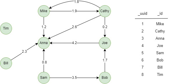 L'exemple est un réseau social, la propriété d'edge @follow.score peut être utilisée comme poids :