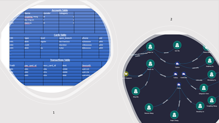 Typicall, banks only hold static information of customers such as name, profession, and region. They find it challenging to identify intentionally concealed or disguised customer identities and related risk. However, with the help of graph technology, bank staffs can, during the due diligence phase, reveal unknown risk factors by gathering associated information from more third-party databases.