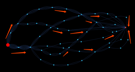 Figure 9: One of the money laundering patterns: from a specific account, diverging through deep (10-hop) transfers and converging into another account.