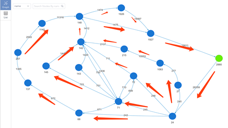 Figure 10: One of the money laundering patterns: chronological ascending order, amount descending order, forming a deep (10 hops+) transfer loop.