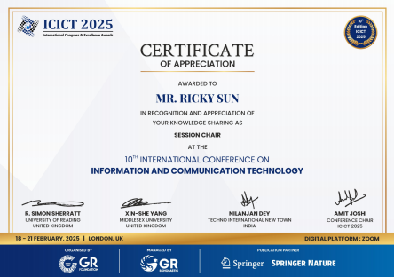 The organizers announced that the 11th International Conference on Information and Communication Technology (ICICT-2026) will be held in London, UK in 2026, and look forward to working with Professor Ricky Sun and colleagues from academia and industry around the world to draw a blueprint for the future of technology. Dr. Joshi said: "We have always believed that the participation of outstanding talents is the core of the value and credibility of the conference. Professor Ricky Sun's contribution has set a benchmark for the ICICT series of conferences." Professor Ricky Sun responded: "It is an honor to participate in this international academic event. In the future, I look forward to continuing to deepen cooperation with colleagues around the world to promote the progress of technology-empowered society."