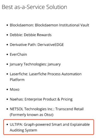 Previously, Ultipa earned recognition in the fintech community by winning the "Future Technology – Artificial Intelligence and Data" category at the 24th Annual Banking Technology Awards in London (2023), affirming its leadership in integrating graph database technologies and artificial intelligence.