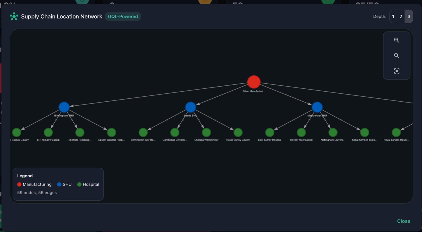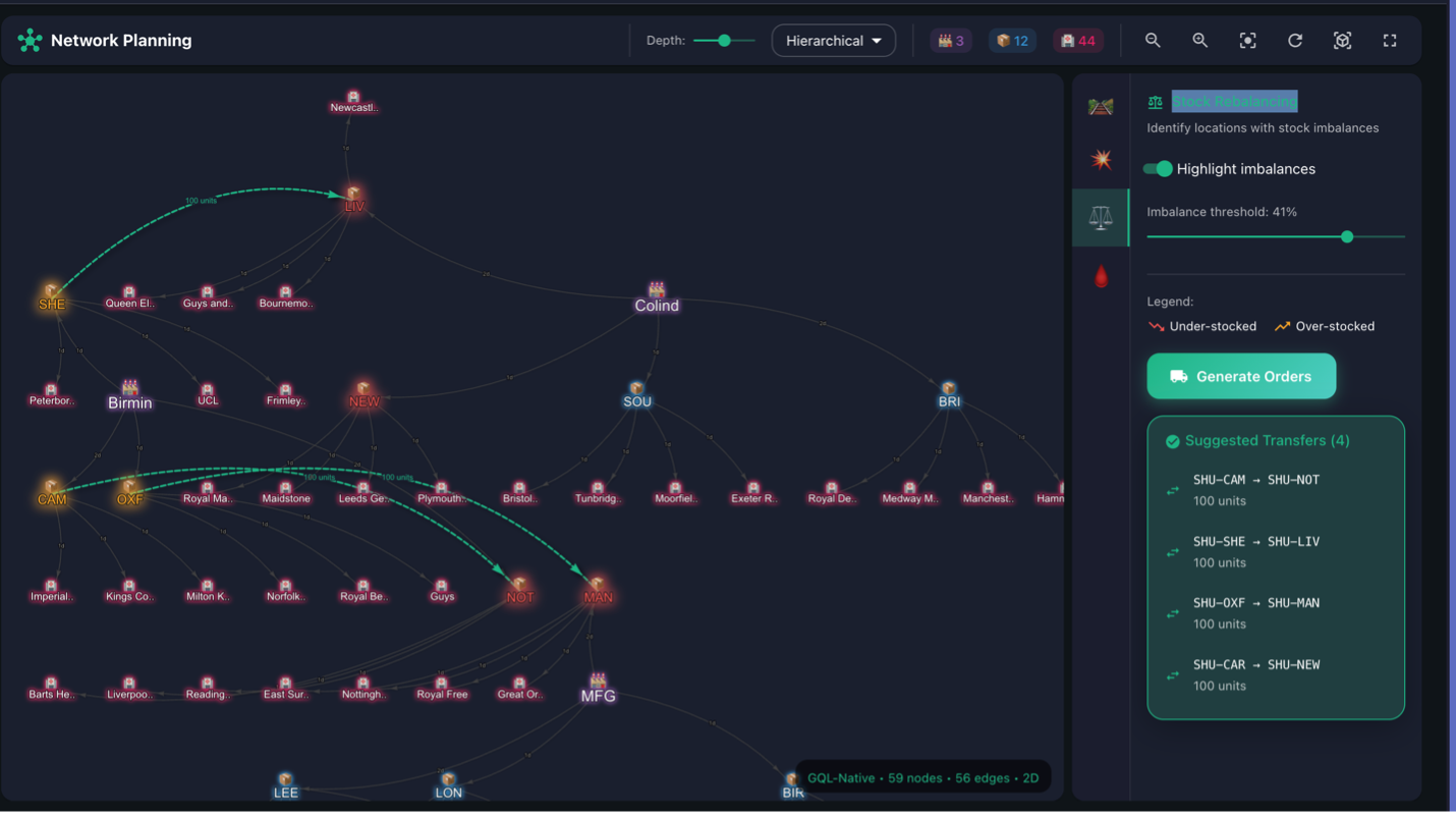 Capabilities that traditional healthcare logistics systems cannot match, powered by real-time graph analytics.